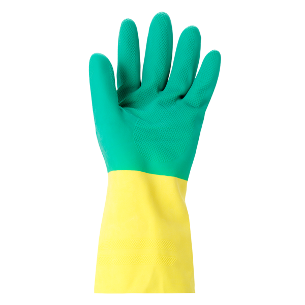 Bi-colour double dipped: Natural rubber and neoprene double dip for reliable chemical protection