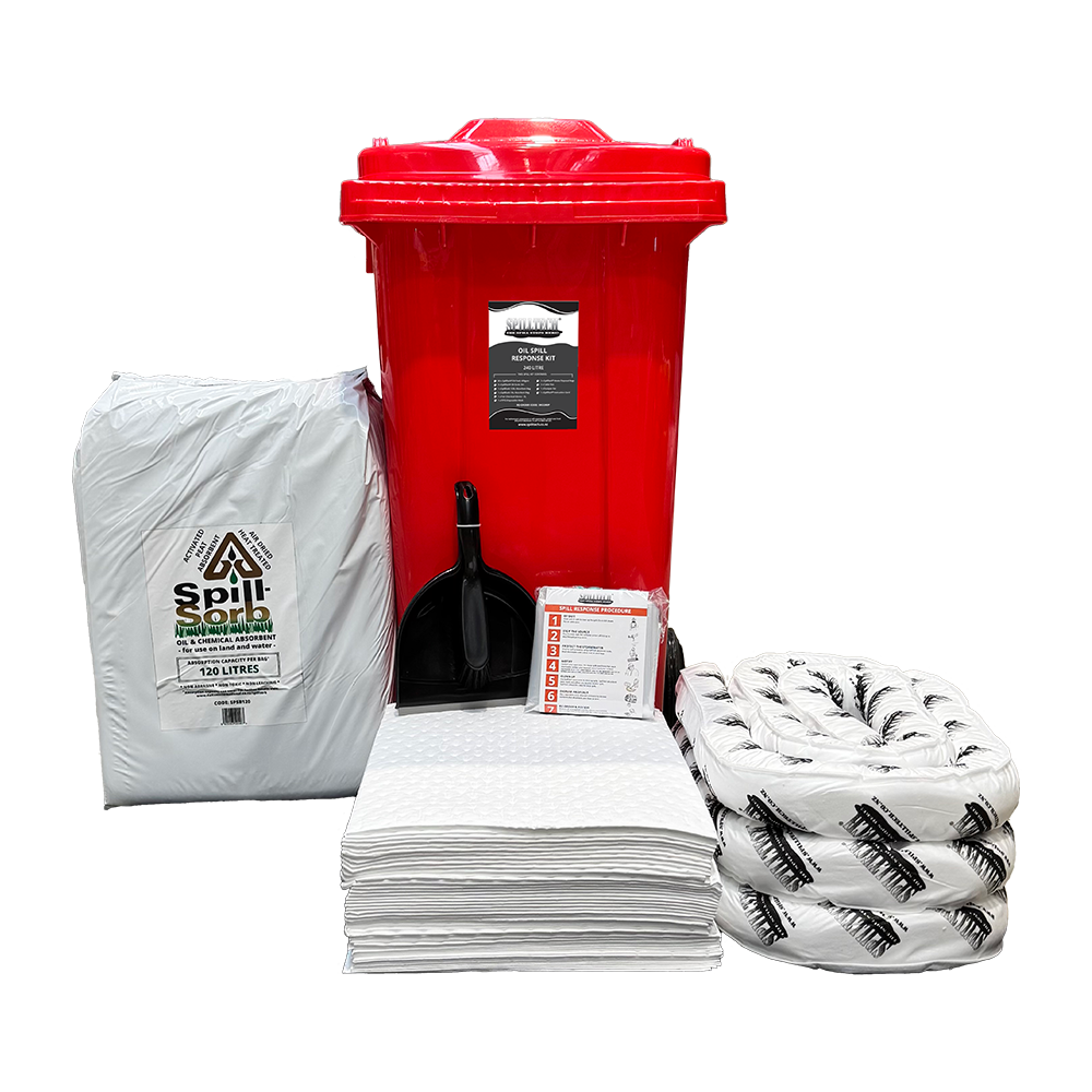 - Oil Only Spill Kit with SpillSorb – 240L in a wheelie bin.